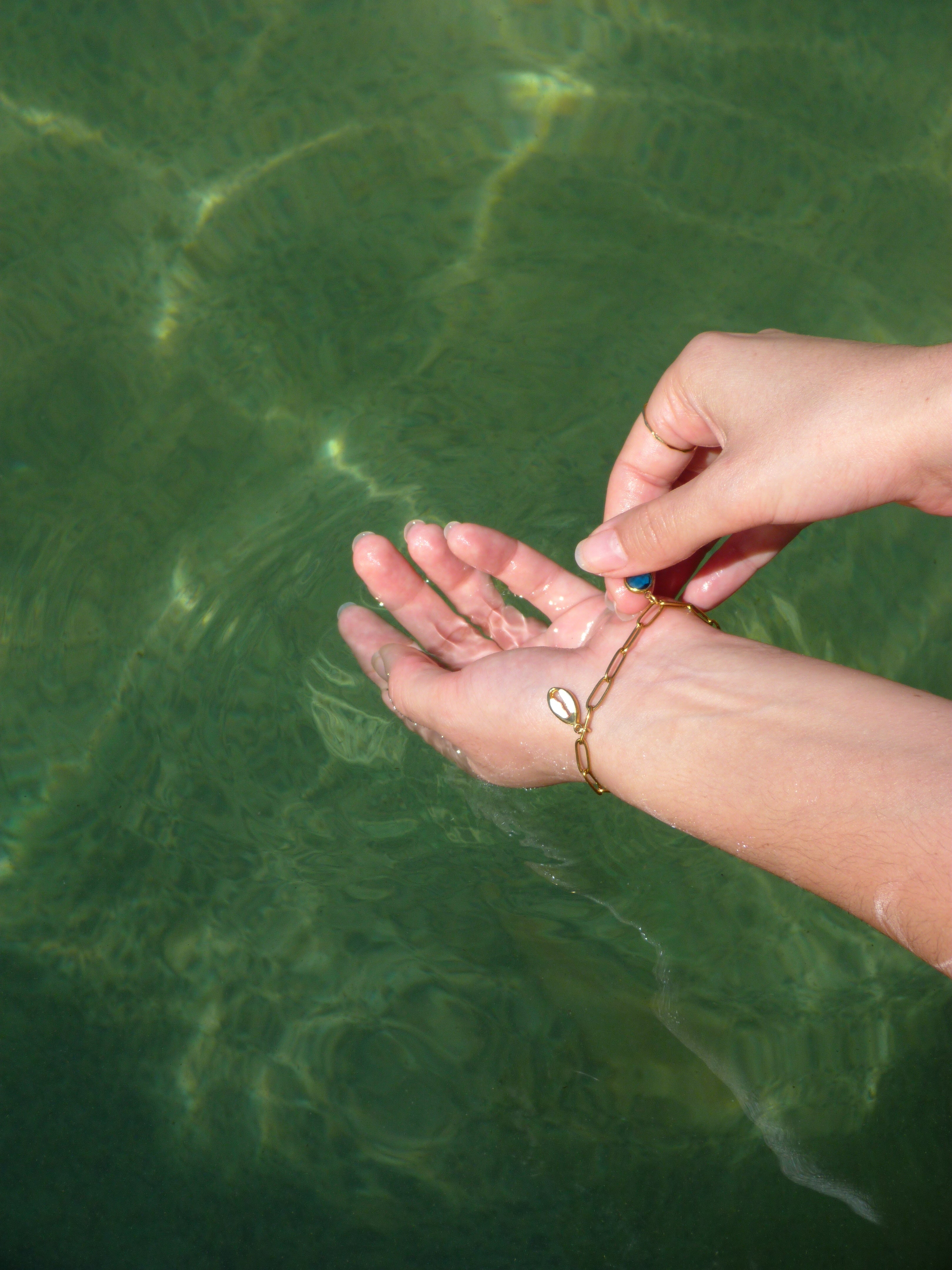 If you want jewellery you can truly live in, look for waterproof and hypoallergenic materials. The most reliable choices are stainless steel, which is strong, rust-resistant and completely waterproof, sterling silver, which is timeless and gentle on sensitive skin, and gold plating over a durable base, which gives you the look of gold without compromising on wearability. These materials are designed to handle saltwater, sweat and everyday wear, making them the smarter investment.